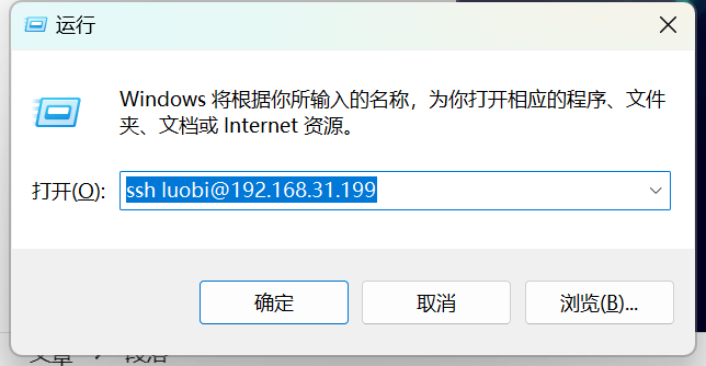 看到IP地址,然后回到系统桌面win+R输入ssh 你的用户名@IP地址